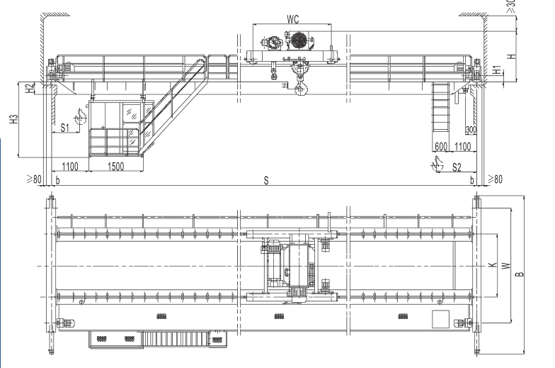 4、 該產(chǎn)品設(shè)有地面和操作室操作兩種形式,操作室有開(kāi)式、閉式兩種,可根據(jù)實(shí)際情況分為左裝和右裝,入門方向有側(cè)面、端面、頂部三種。