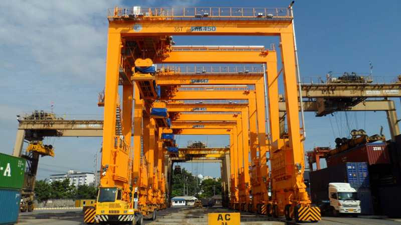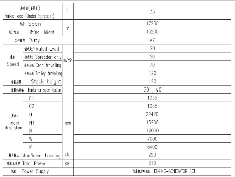 2、 采用專用集裝箱吊具,可起吊20、40、45標準集裝箱及液壓儲存罐。