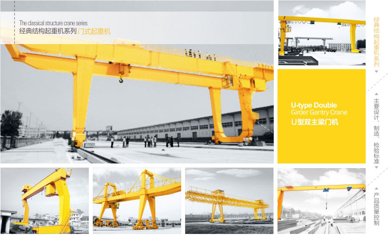 1、 U型雙主梁吊鉤門式起重機適用于露天貨場、鐵路沿線作業(yè)進行一般的裝卸及起重搬運工作。